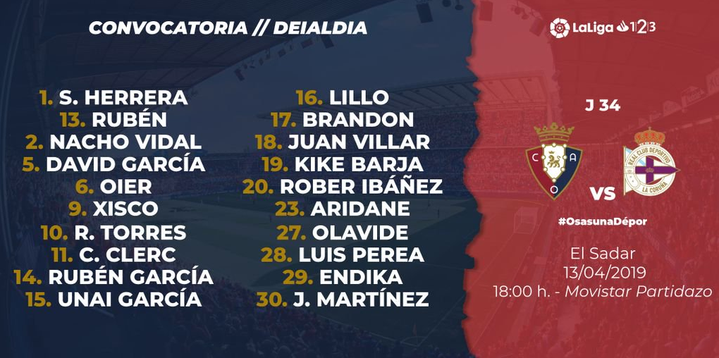 Seguramente, el rival más temible posible dentro de la categoría. Osasuna es una bala con el objetivo del ascenso marcado entre ceja y ceja, y su camino va directo hacia él. Son los líderes, los que más goles marcan y los más fuertes en un domicilio que todavía sigue inexpugnable. Es, precisamente, el que visitará el Deportivo para comenzar su nueva etapa. El sábado a partir de las seis de la tarde se hará carne el debut de Martí en su banquillo, y si quiere triunfar deberá asaltar unos terrenos defendidos con uñas y dientes. El exdeportivista Xisco Jiménez advierte, aún así, sobre el peligro de los blanquiazules a pesar de sus inestables circunstancias: “Muchos pensarán que vienen en una racha negativa, pero siguen siendo el Dépor. Ni mucho menos hay que confiarse, sabemos que para ganarles tenemos que hacer muchas cosas bien”. Sea como sea, el segundo intento de ascenso de los navarros va viento en popa, esta vez de la mano de Jagoba Arrasate.